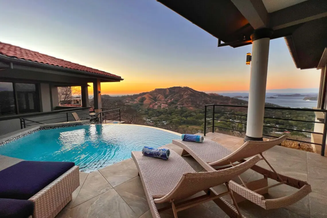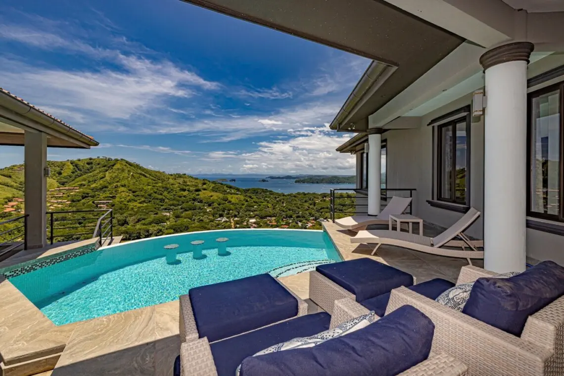 Imagine sitting in your private infinity pool, 3 stories up, overlooking the bay of Playas del Coco and the Pacific Ocean with sprawling views of mountains, volcanoes, and the Papagayo Peninsula.