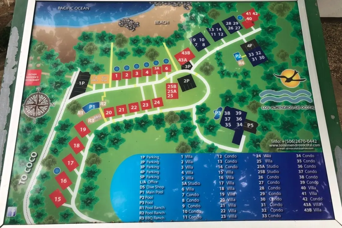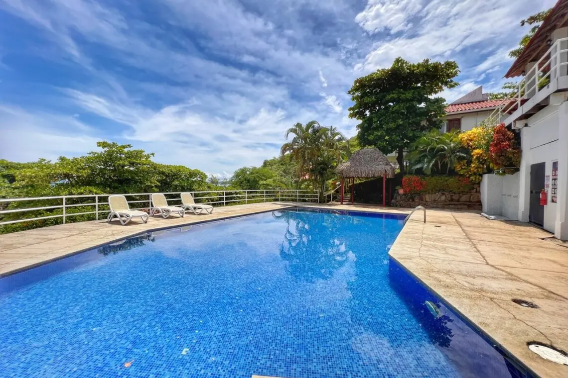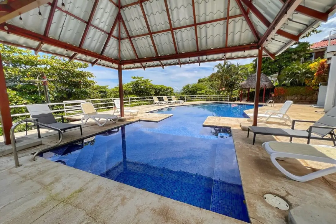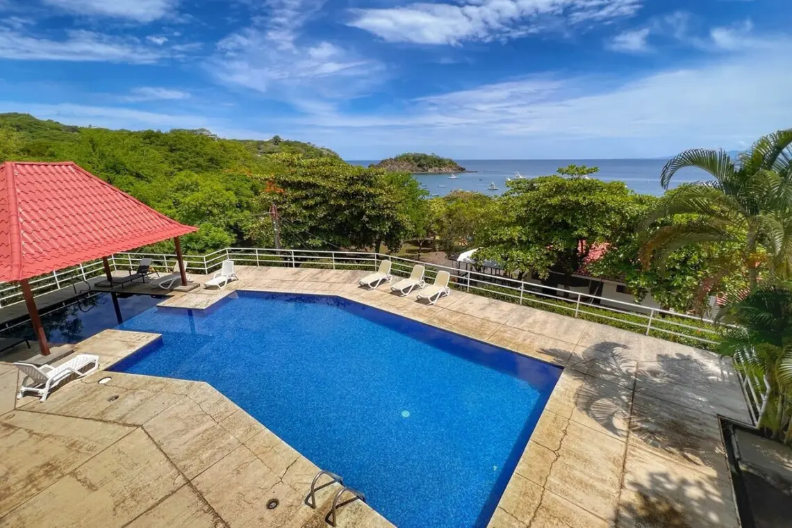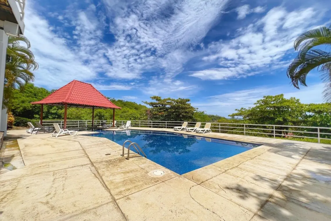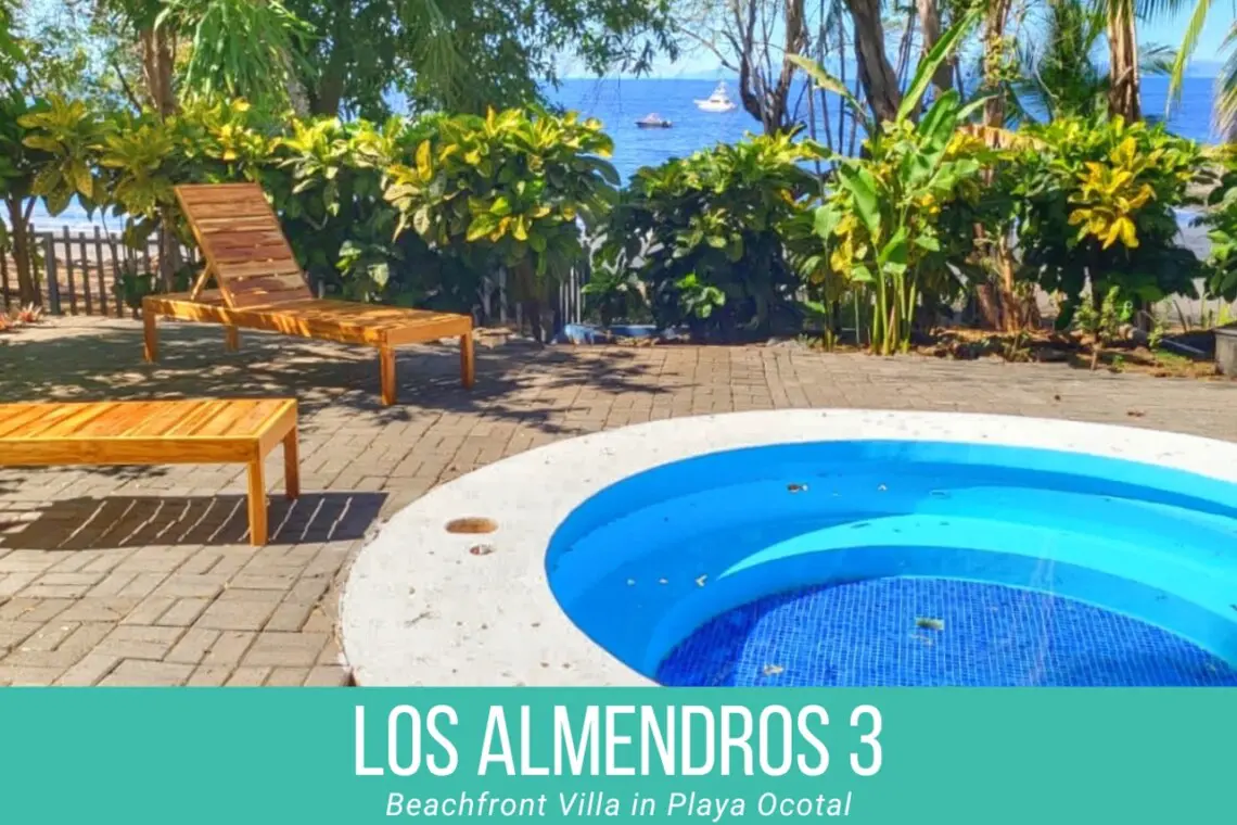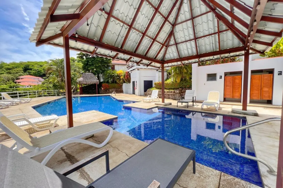 Los Almendros is a gated community on the beach in Playa Ocotal. There is a guard that lets guests in and out of the property. In addition to your private plunge pool, you can use the shared community pool with ocean views, loungers and covered table areas.