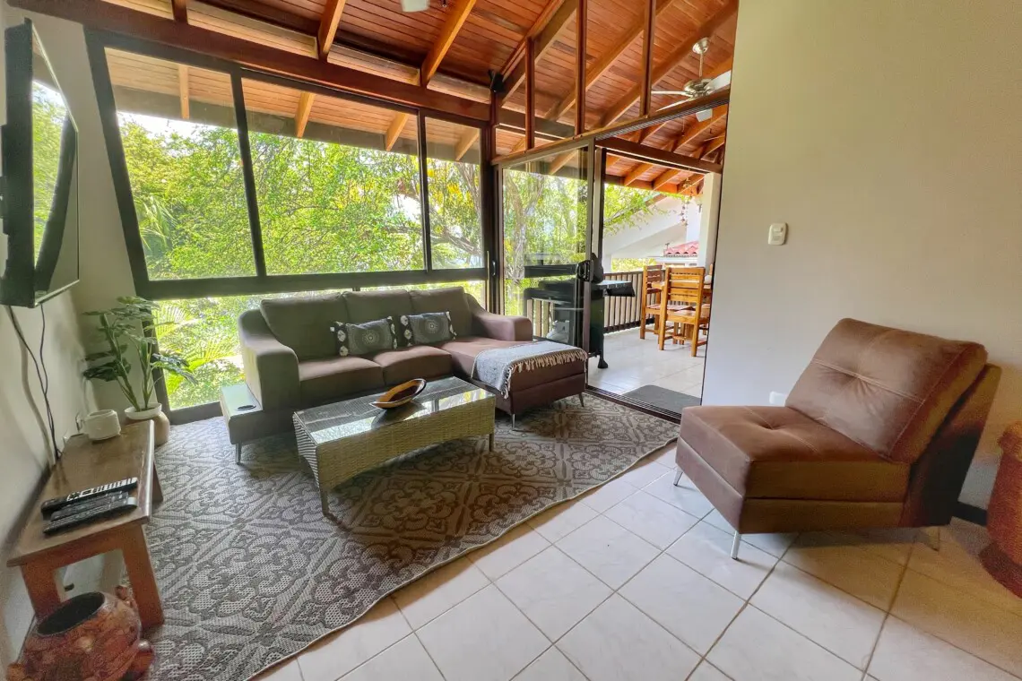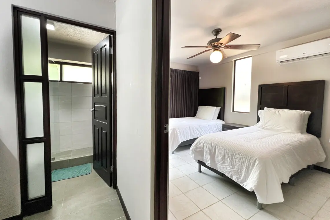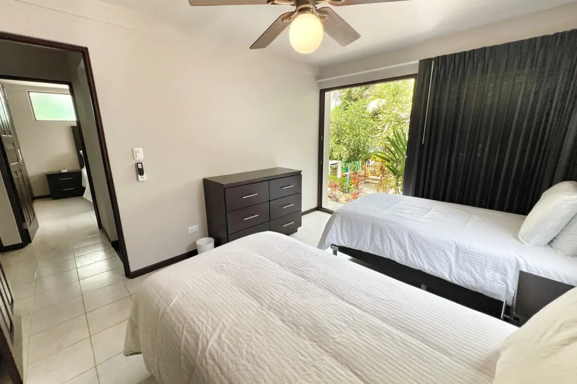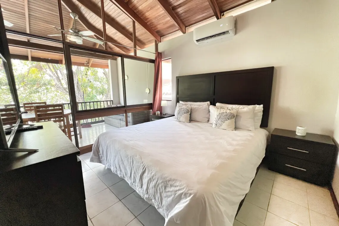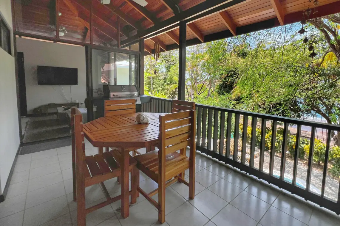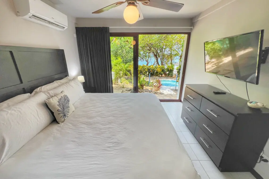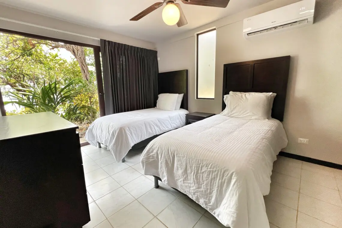 Los Almendros 3 stands out as one of the rare beachfront properties in the region. Positioned mere steps away from the shoreline of Playa Ocotal, this villa boasts three bedrooms and plenty of space. The main floor features a kitchen, living area, full bathroom, and primary bedroom. The spacious balcony invites relaxation – dine al fresco, grill up dinner or just listen to the waves. The lower level has two additional bedrooms and a full bathroom, each with access to the private yard. The yard offers a tranquil retreat with its plunge pool and lounge chairs, while a gate provides direct access to the beach.