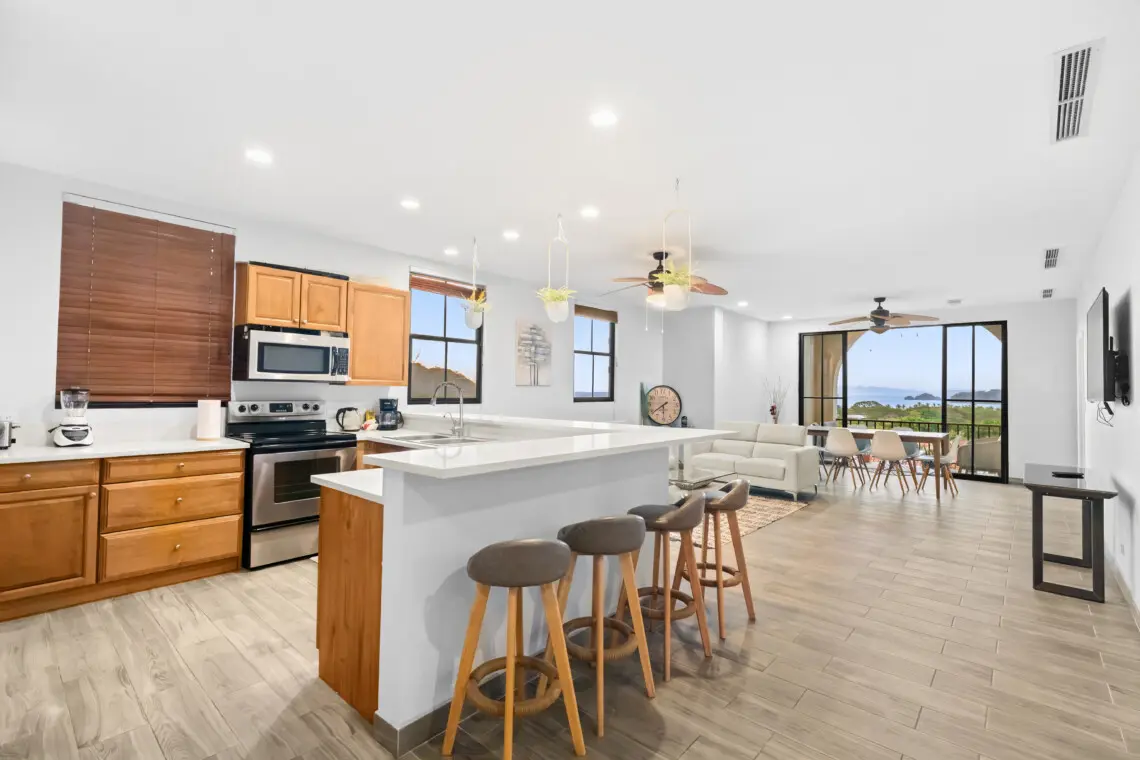 This spacious 3-bedroom, 2-bathroom unit is thoughtfully designed to accommodate up to 6 guests. With a modern, fully-equipped kitchen, living room with Smart TV and dining area for 6, there is lots of room to spread out both indoors and out. For a change of pace, step outside to your private patio, where you can savor a cup of coffee or enjoy a stunning sunset while soaking up the ocean views. As part of a gated community with roaming security, you’ll enjoy peace of mind and a range of amenities, including multiple swimming pools. Whether you’re lounging by the pool, exploring nearby attractions, or simply enjoying the comfort of your well-appointed condo, Pacifico C309 offers a relaxing and enjoyable vacation experience.