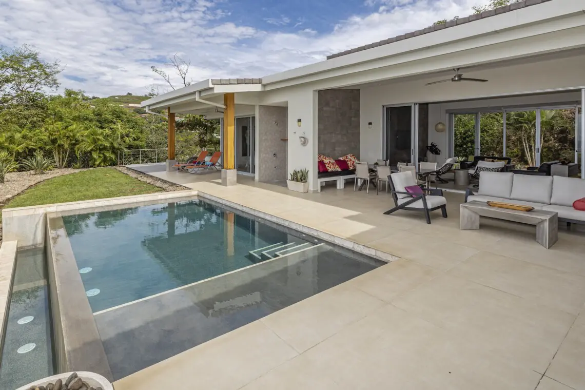 Casa Siete is a spacious, single-level ocean view villa in the exclusive Pacifico community of Playas del Coco. This 3-bedroom, 2.5-bath home offers 3,300 sq. ft. of open, airy living space that flows seamlessly onto a stunning infinity-edge pool terrace overlooking the Pacific.