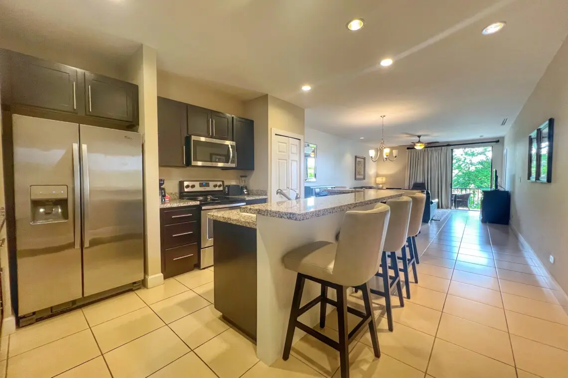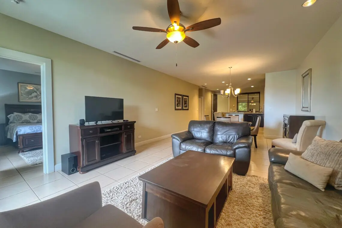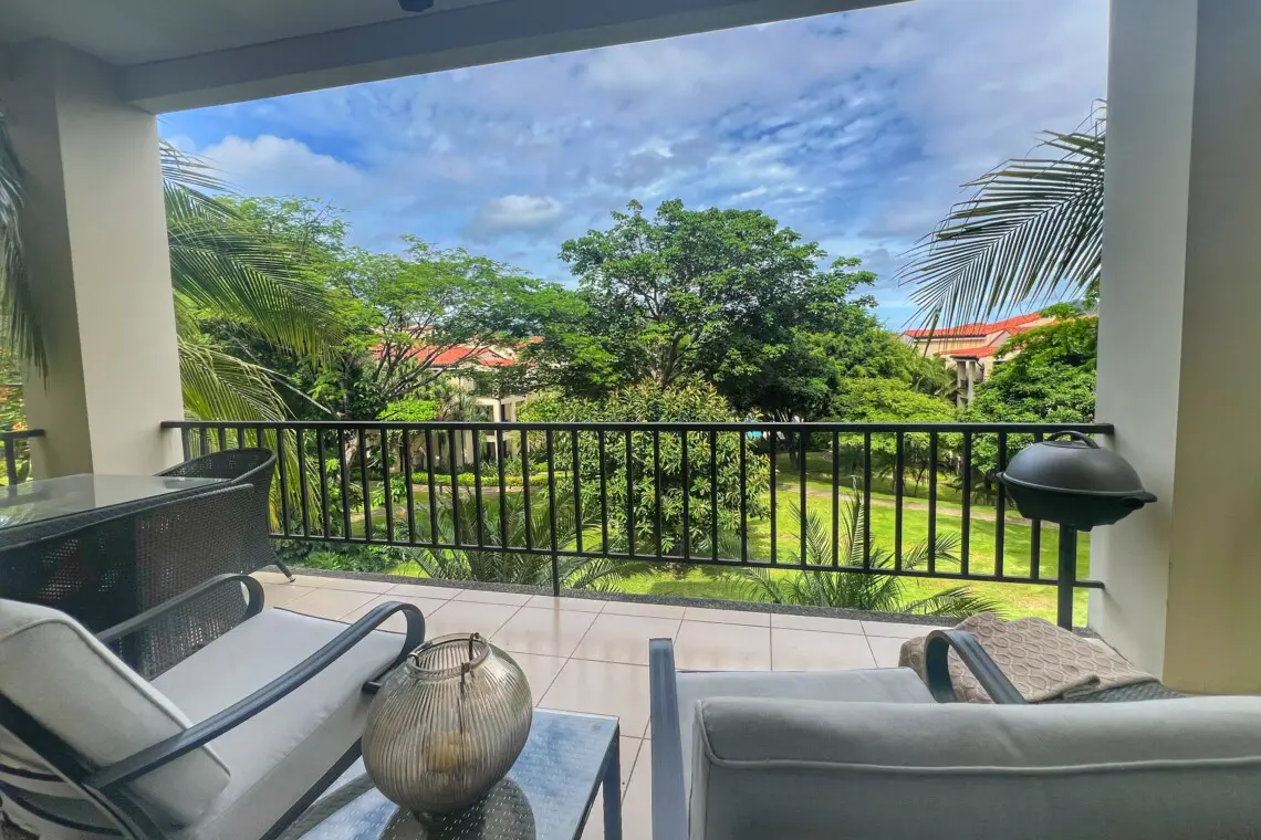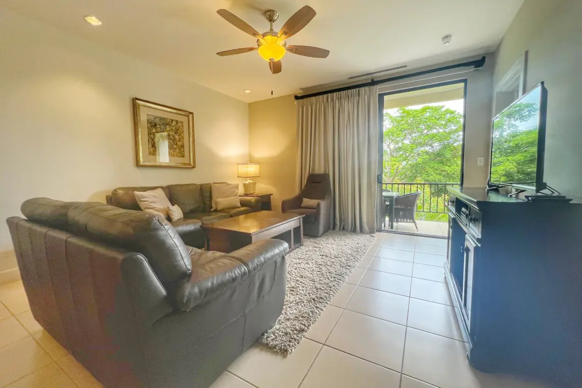 Welcome to Pacifico L809 — a stylish and serene two-bedroom, two-bathroom condo perfectly situated on the second floor with scenic views of Pacifico’s lush tropical grounds. This unit offers a peaceful retreat set back from the main pools, yet just steps away from top amenities including a lap pool, jacuzzi, poolside bar, and more. To make your vacation even better, this unit includes use of a 4-seater golf cart during your stay!