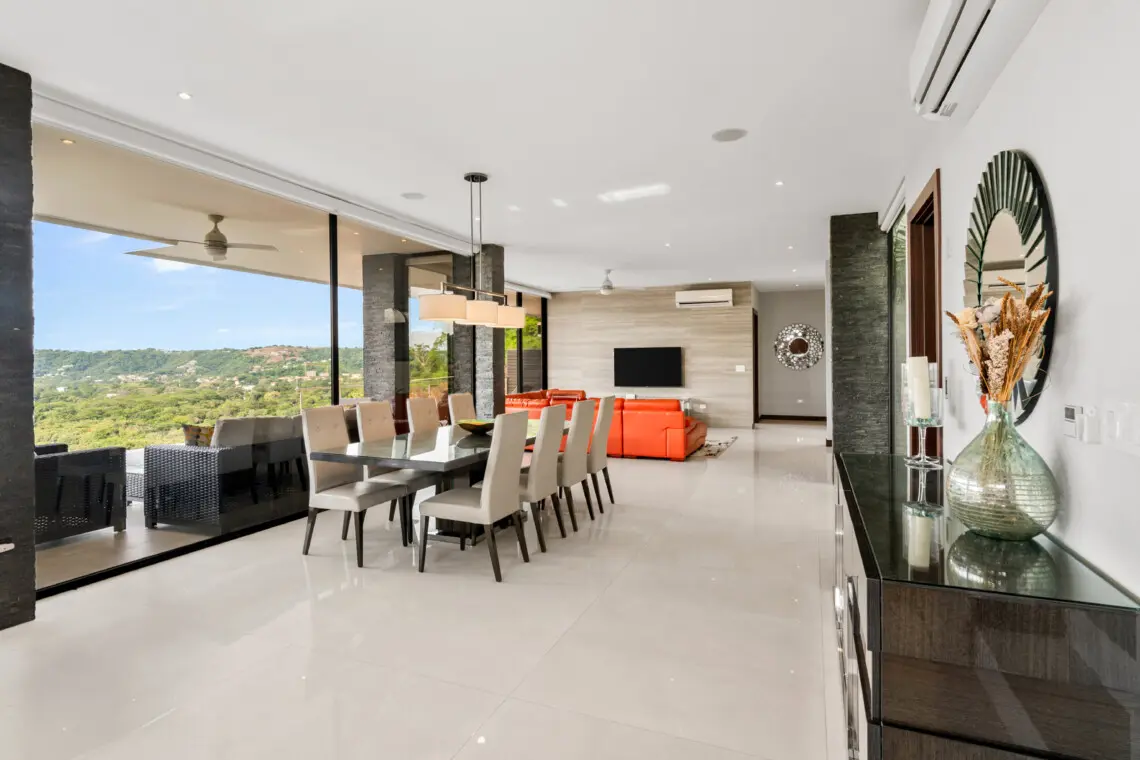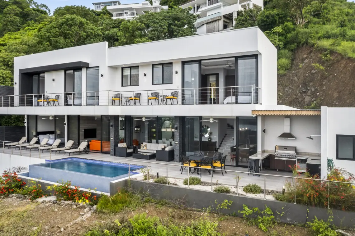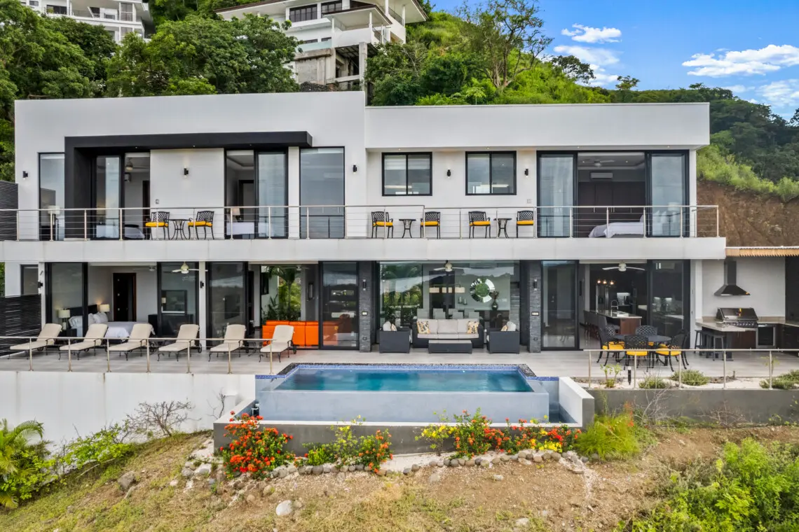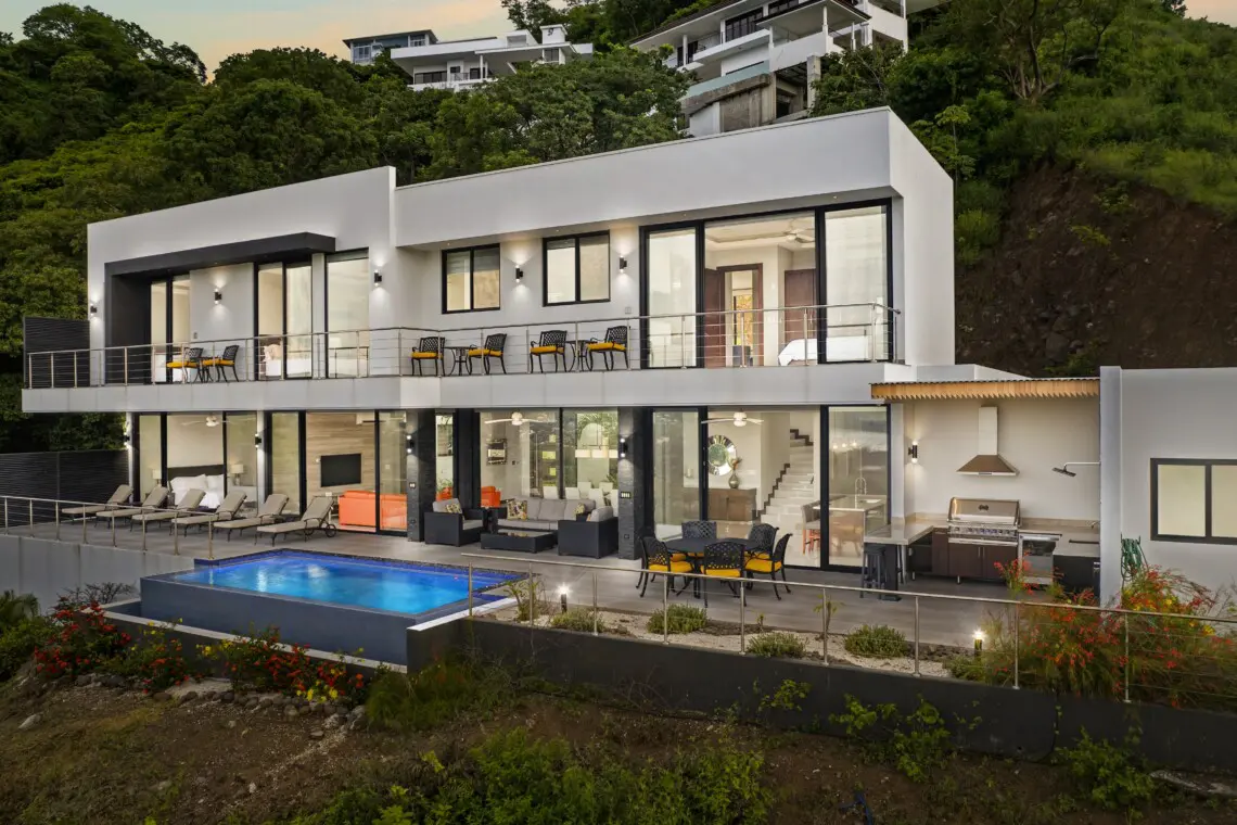 Villa Vida Moderna (Modern Life) is a stunning home has 4 king suites, sleeping up to 10 guests across 6,700 square feet of interior/exterior space. The home features high speed 200Mbps fiber optic internet with Smart TVs in each room, modern finishes, exquisite furnishings, and every amenity you could want on vacation.