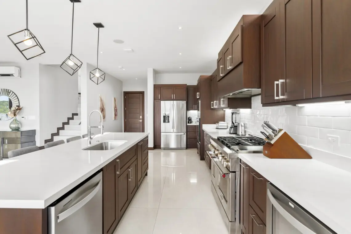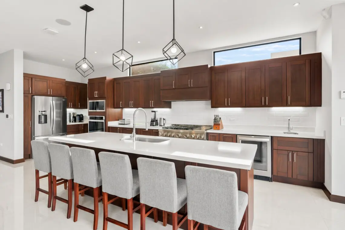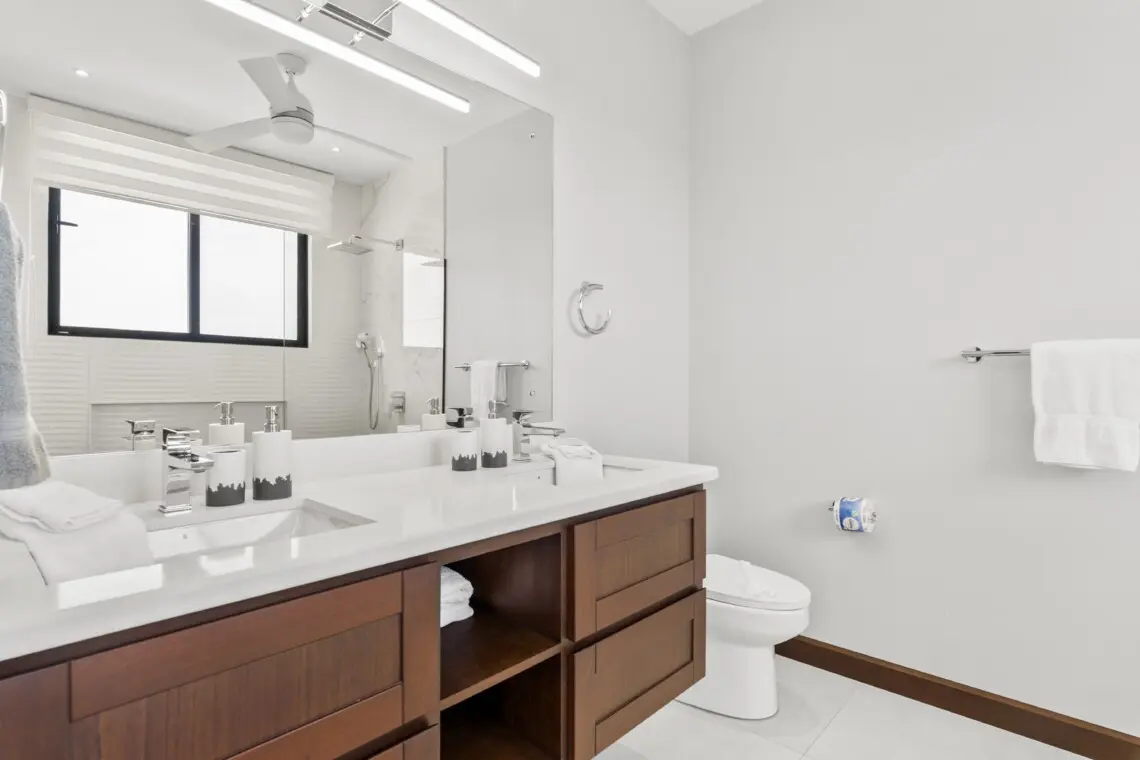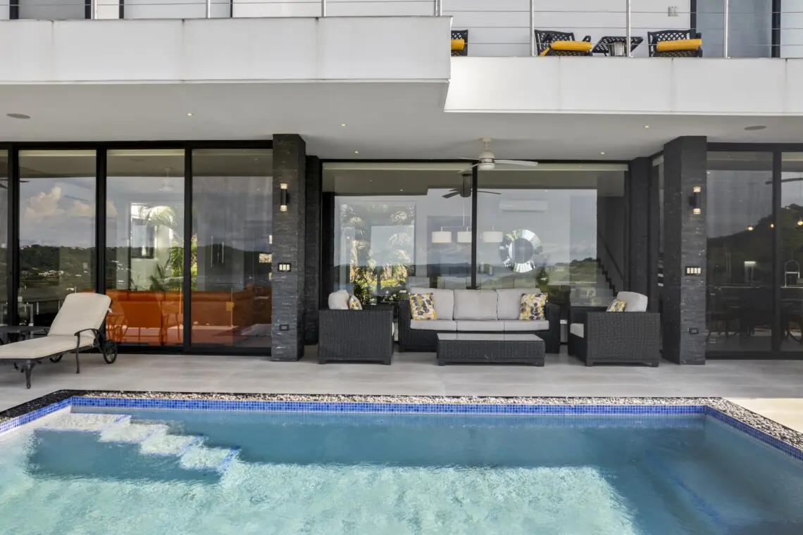 Villa Vida Moderna (Modern Life) is a stunning home has 4 king suites, sleeping up to 10 guests across 6,700 square feet of interior/exterior space. The home features high speed 200Mbps fiber optic internet with Smart TVs in each room, modern finishes, exquisite furnishings, and every amenity you could want on vacation.