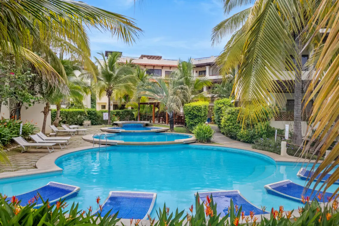 Coco Sunset Hills is a sprawling gated community with 6 amazing pools, beautiful landscaping and lots of parking. This complex is just a short walk to two large plazas (Pueblito Norte and Pueblito Sur) that are home to many fantastic restaurants, a coffee shop, a grocery store, a day spa, a medical office, and more! Cross the street and you’re on the beach path, just another 1-minute walk to the beautiful sand of Coco Beach. You’ll find many, many more restaurants as well as shops, a casino, and 3 large grocery stores in Downtown Coco, just a 10-minute walk from your door.