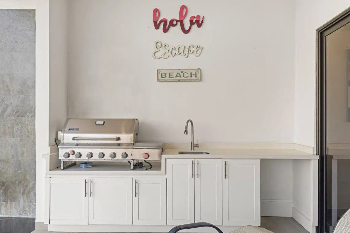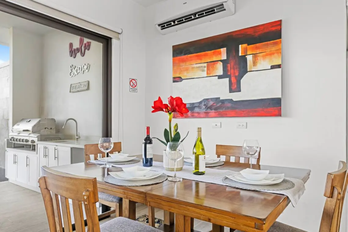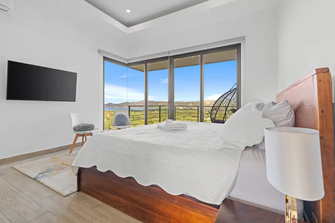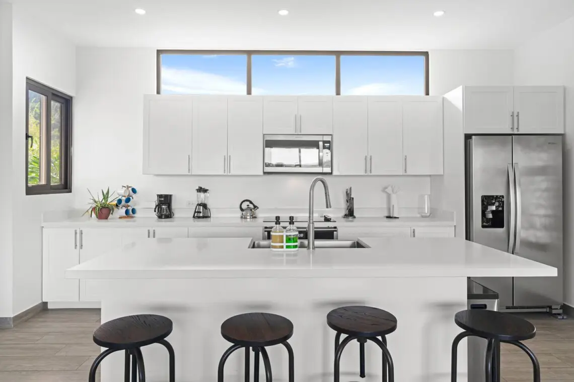 Villa Regio offers 3 bedrooms and 2.5 bathrooms, making it an ideal home for families or groups. Each bedroom features ocean views and Smart TVs, while the open-concept main floor boasts vaulted ceilings and a seamless flow between the kitchen, dining, and living areas.