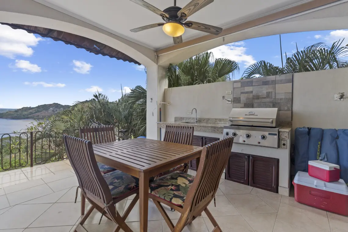 Outside on the covered terrace is an entire outdoor living space with spaces to lounge, eat or chill while the ocean is crashing below. There’s even a large gas BBQ built into the outdoor kitchen space. The terrace offers a shaded area to take in the ocean breezes or head to the ocean-view swimming pool for some fun in the sun.