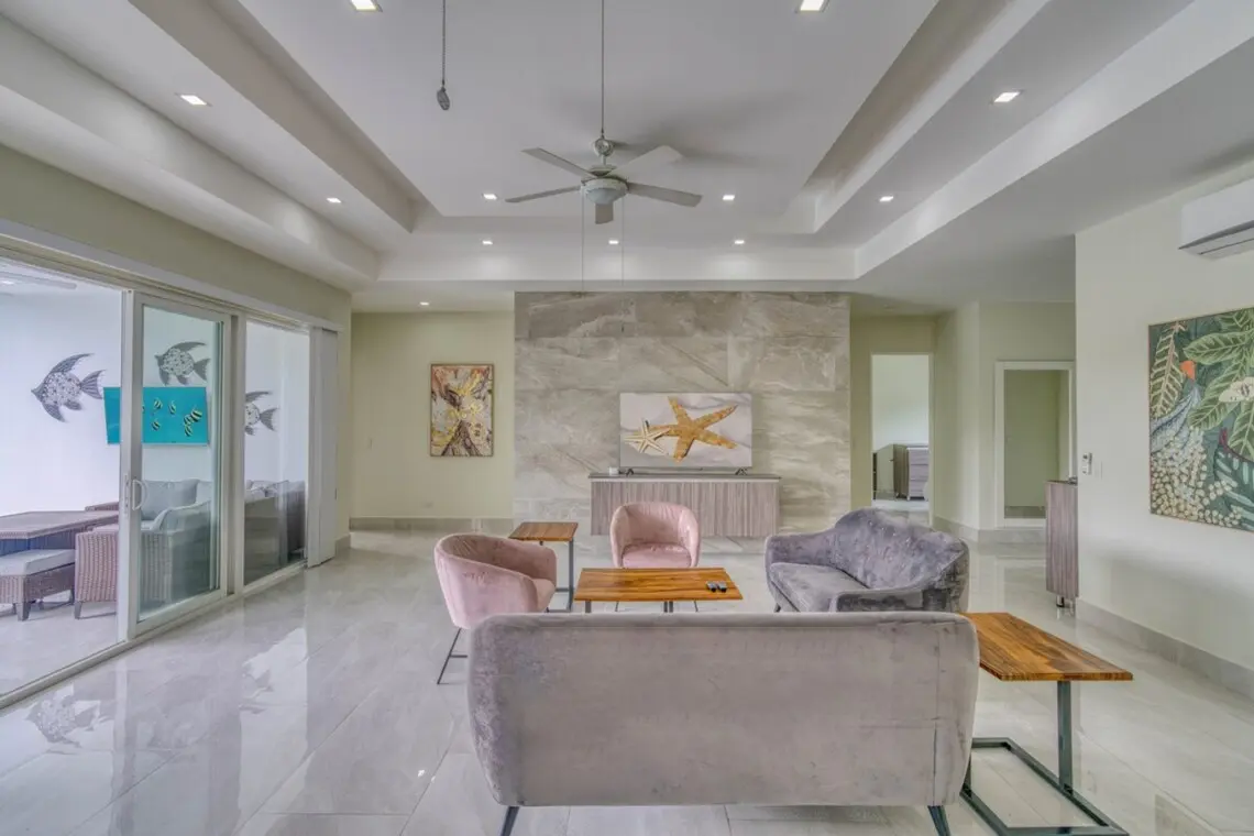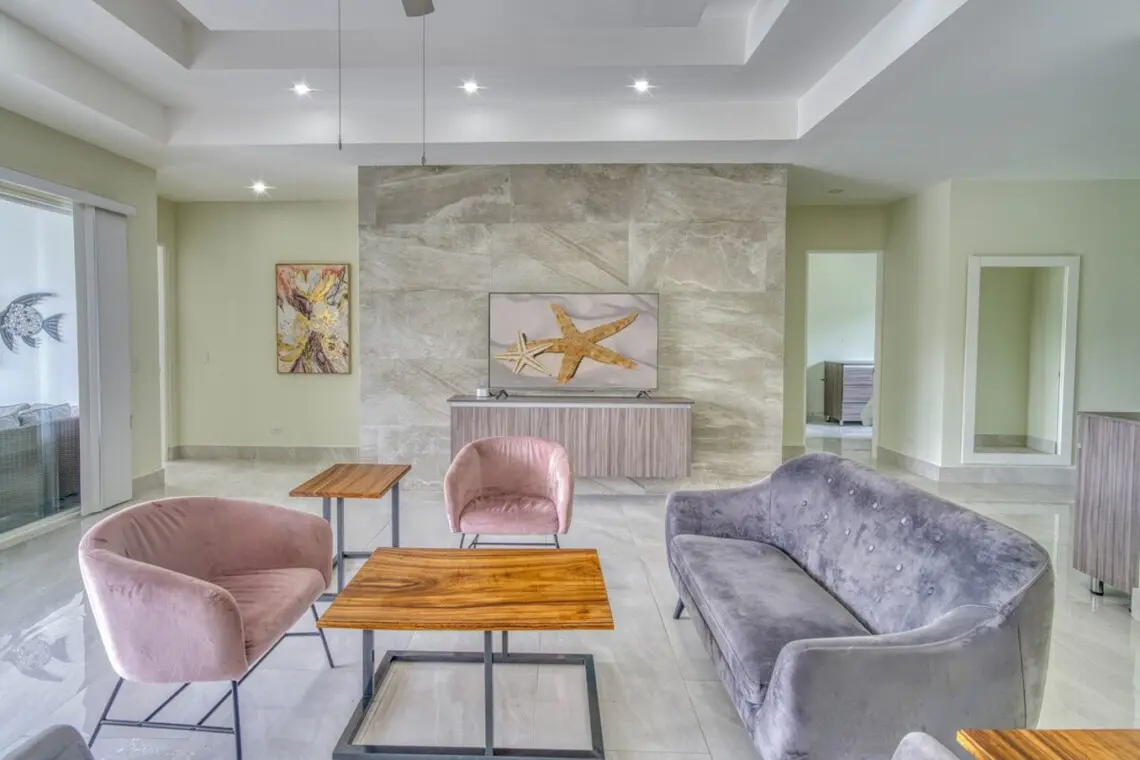 – Living room with 65″ Smart TV