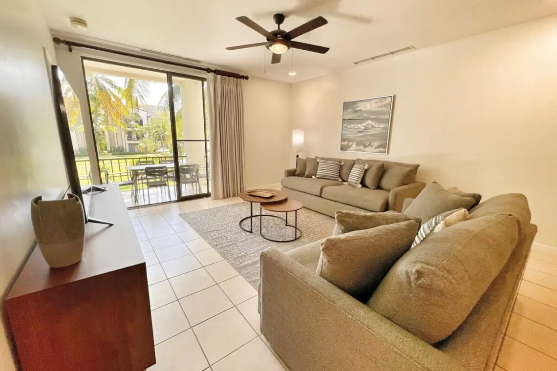 PACIFICO L1006 is a stunning 3-bedroom corner condo that was updated and refurnished in January 2023. High-quality furnishings, plush linens, and a perfectly appointed private terrace are just some of the perks of this beautiful unit. Located on the second floor, the condo faces the quieter pools in the complex and is surrounded by swaying palms, offering shade throughout the day.