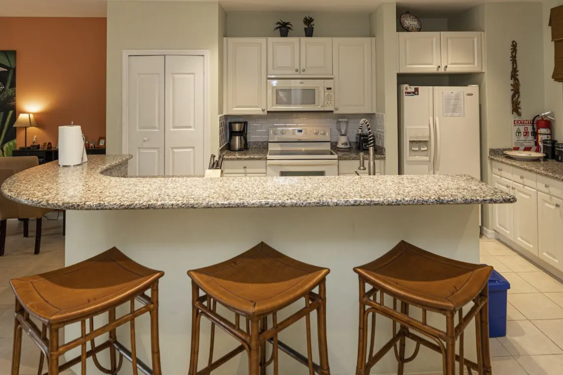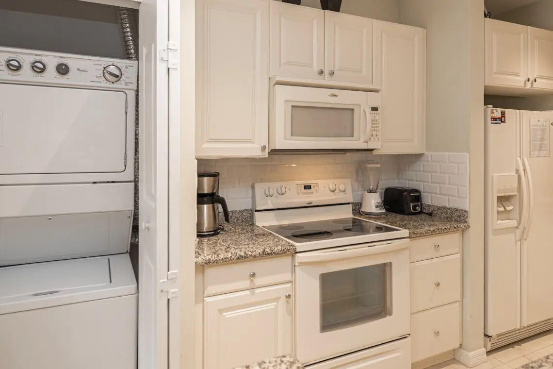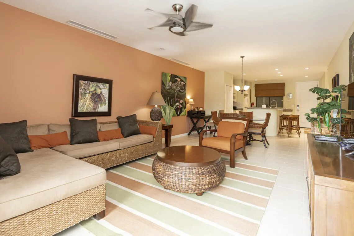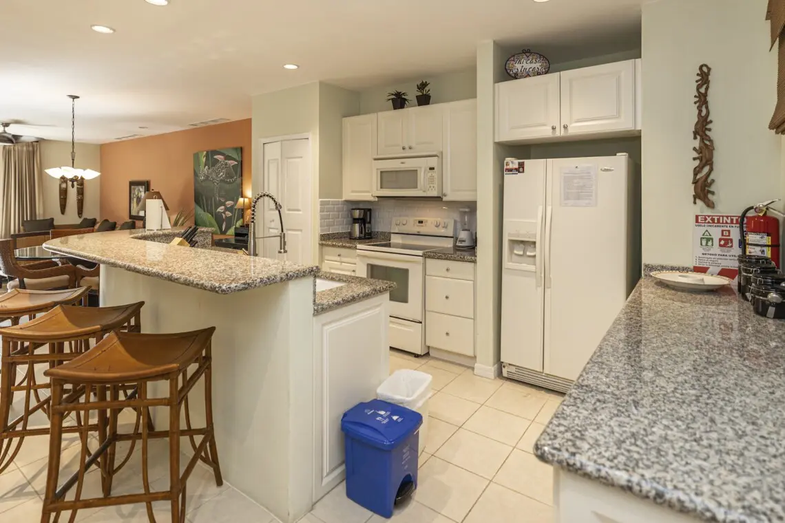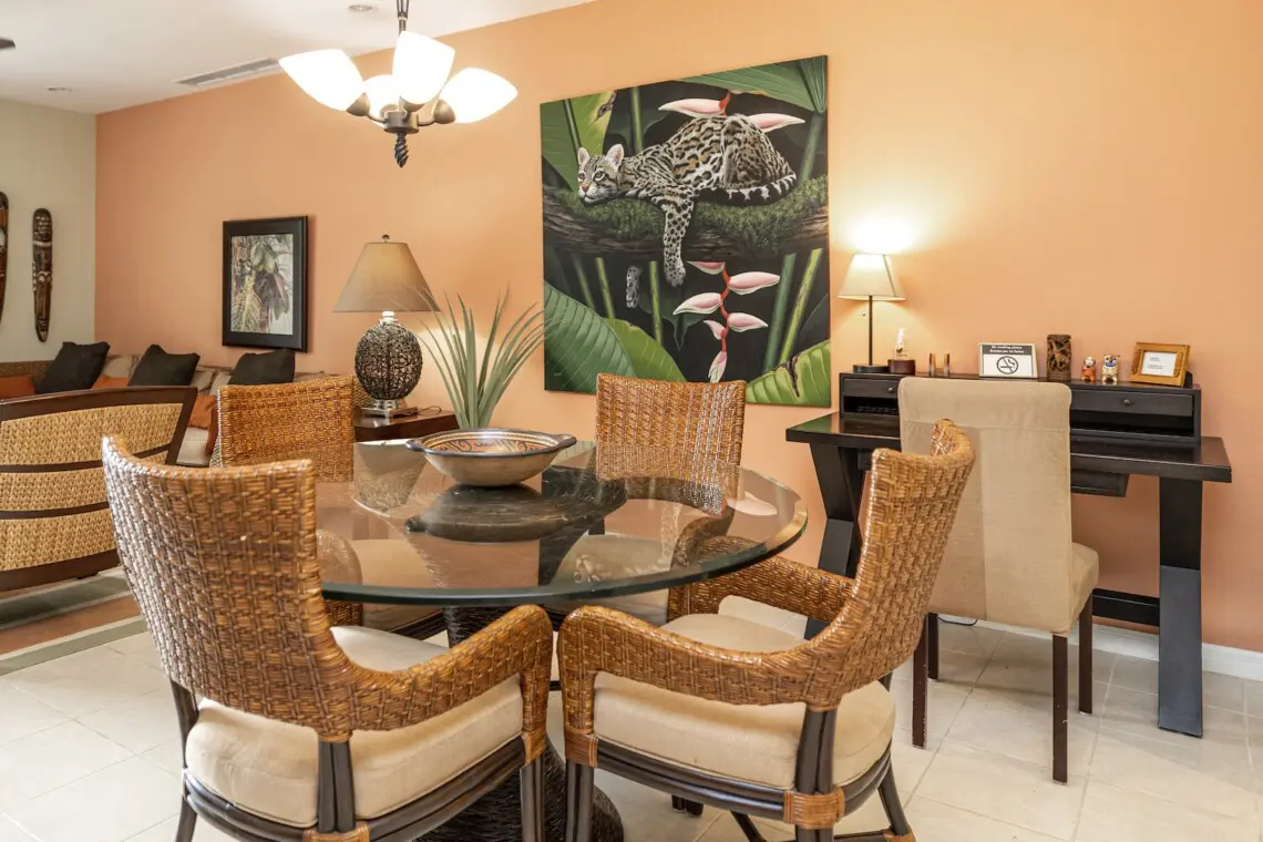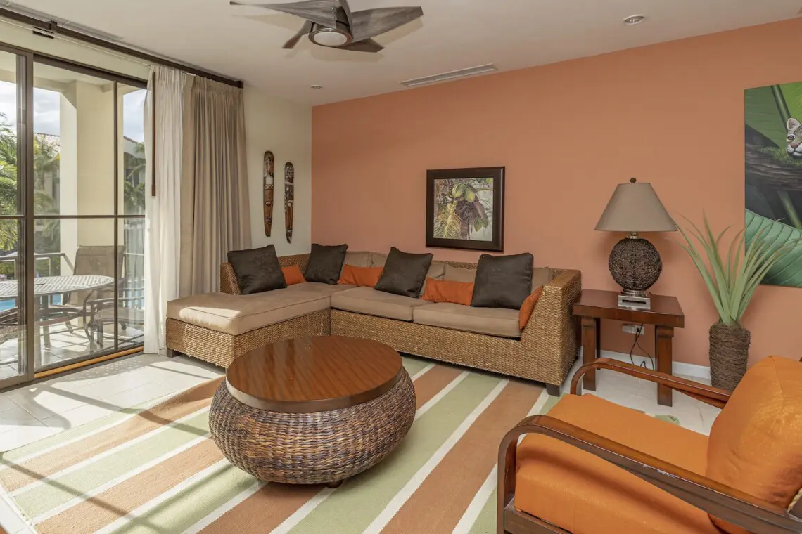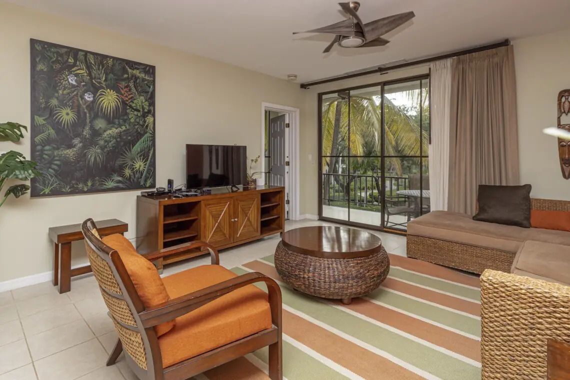 This second-floor condo has a fun tropical vibe with bright colours and rich wood furnishings and serene views of the tranquil pool area. It boasts a spacious king bedroom and a cozy queen bedroom, along with convenient amenities such as a fully equipped kitchen, in-unit laundry facilities, a generous living room, and a shaded covered terrace perfect for relaxation any time of day. Situated within walking distance to on-site restaurants, a major grocery store, and Coco’s lively main street, this location offers both convenience and tranquility. Guests also have access to various on-site pools, the picturesque PACIFICO Beach Club, scenic walking trails, and a children’s park for added enjoyment.