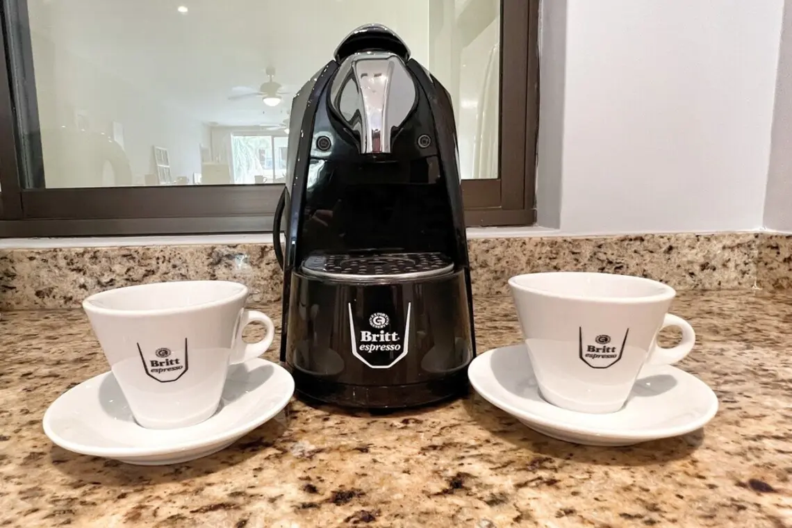 – Full kitchen with large & small appliances, plus coffee bar including Britt espresso machine