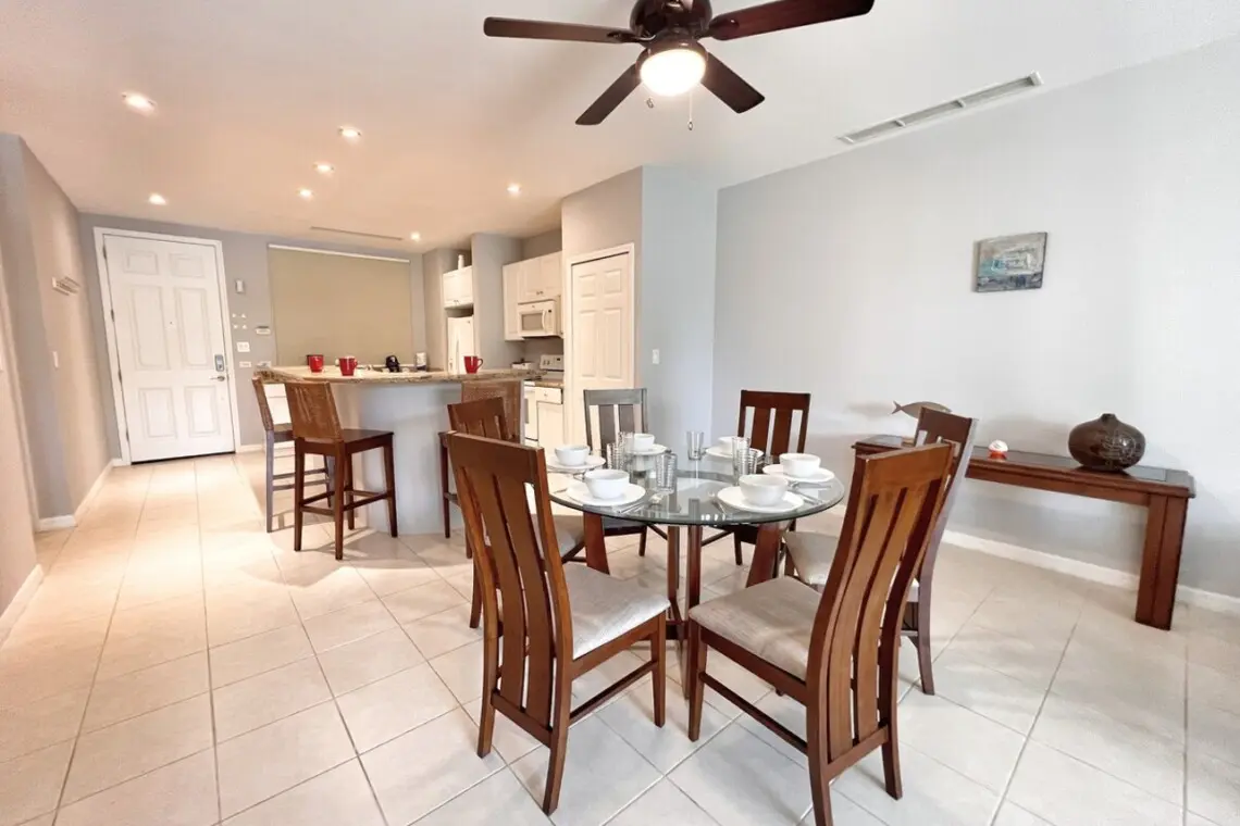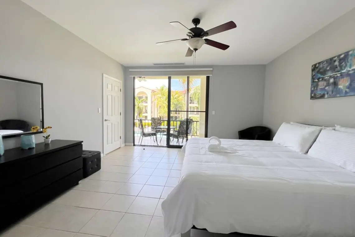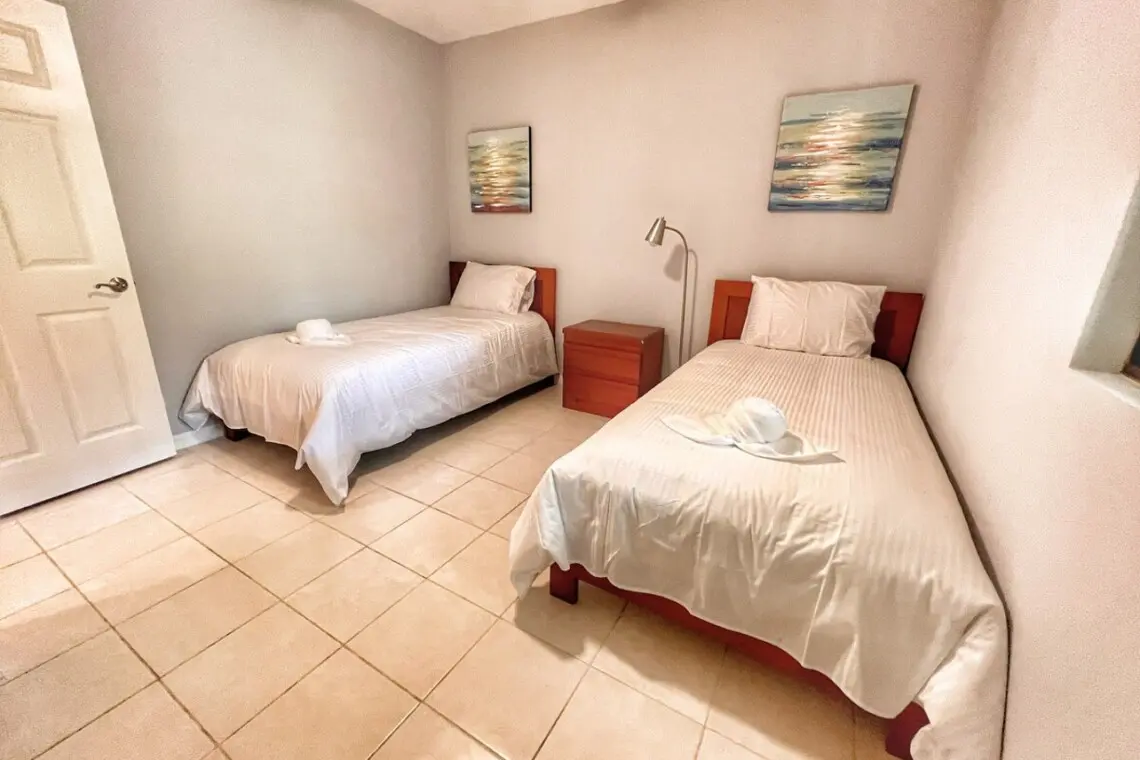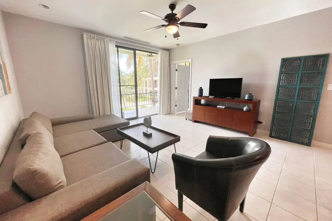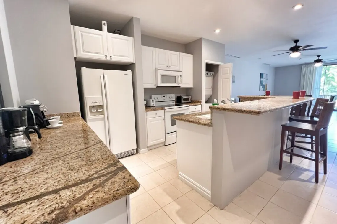 This condo was refreshed in August 2023 with new paint, new linens, new furniture upholstery and updated finishes. This second floor, 2 bedroom, 2 bath condo overlooks the quieter pool and has 2 KING bedrooms (one can be configured as 2 single beds, plus a full kitchen, in-unit laundry, a large living room and a covered terrace that stays shaded throughout the day. The location is a quick walk to the on-site restaurants, main a large grocery store and Coco’s bustling main street! Guests enjoy access to several on-site pools, the oceanfront PACIFICO Beach Club, walking/hiking trails and a kids park.