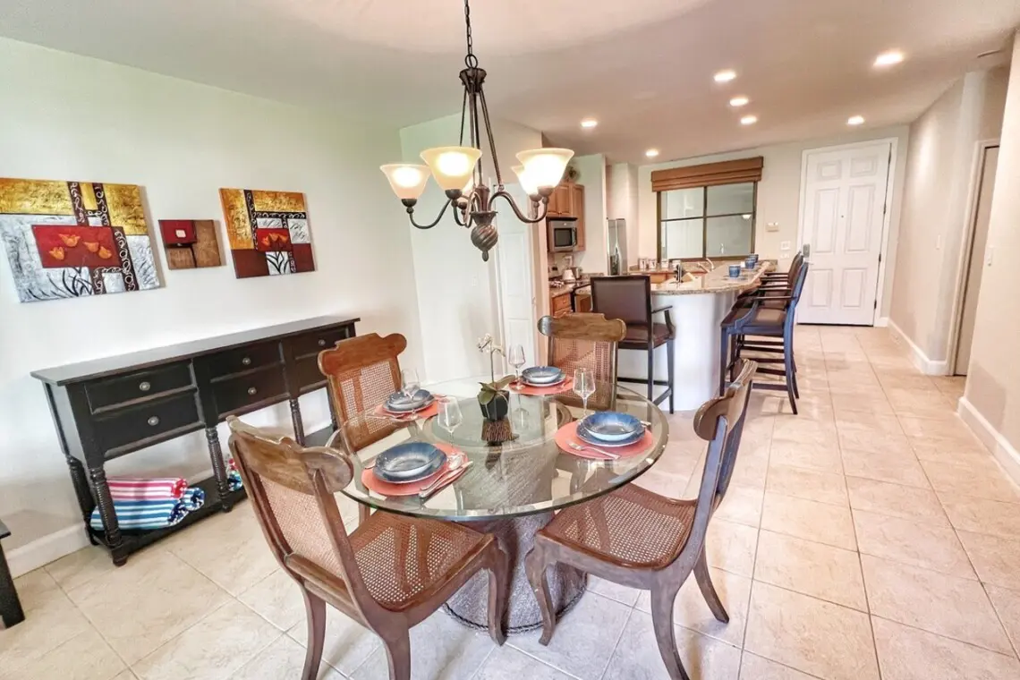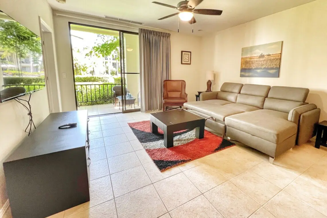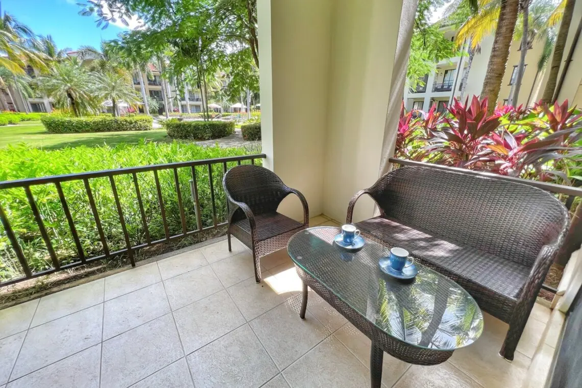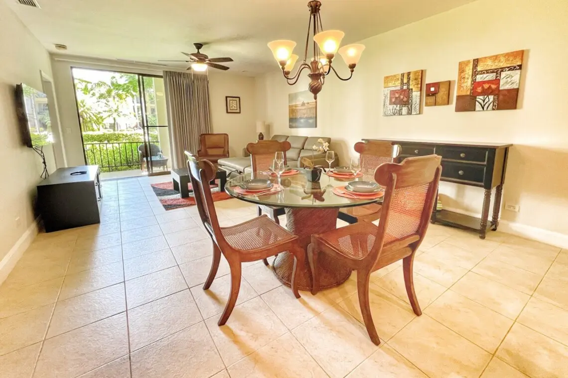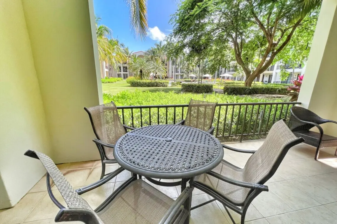 On the terrace, you can enjoy the tropical breezes and views of the immaculate grounds. There is a conversation set plus a dining table for 4, perfect for dining al fresco, games night, or teleworking in the tropics!