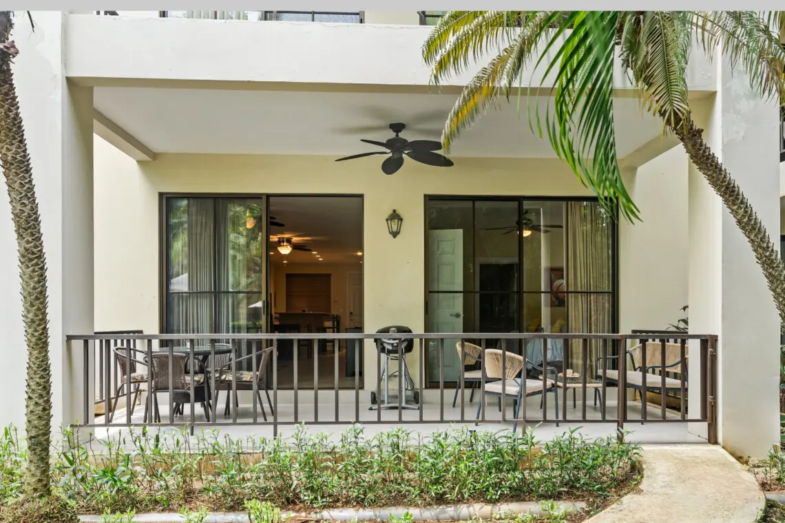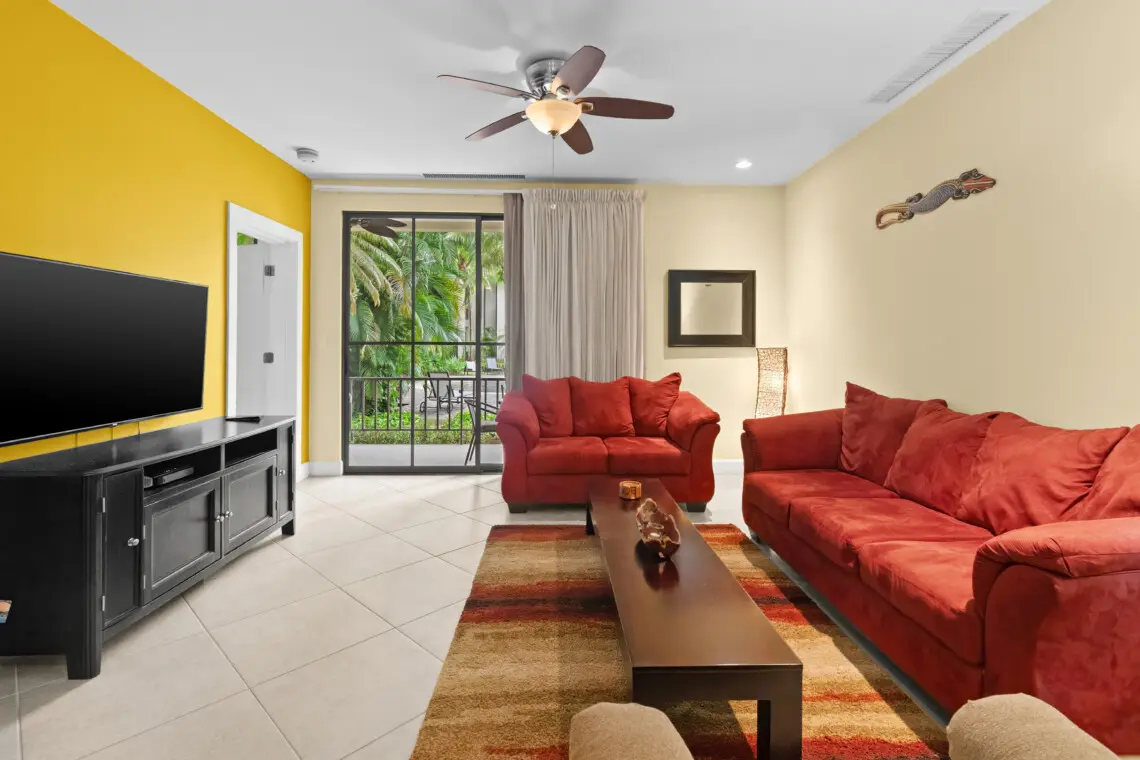 This inviting vacation rental offers a perfect blend of comfort and convenience, located on the ground floor with easy access to a covered terrace and a walkout to the pool.