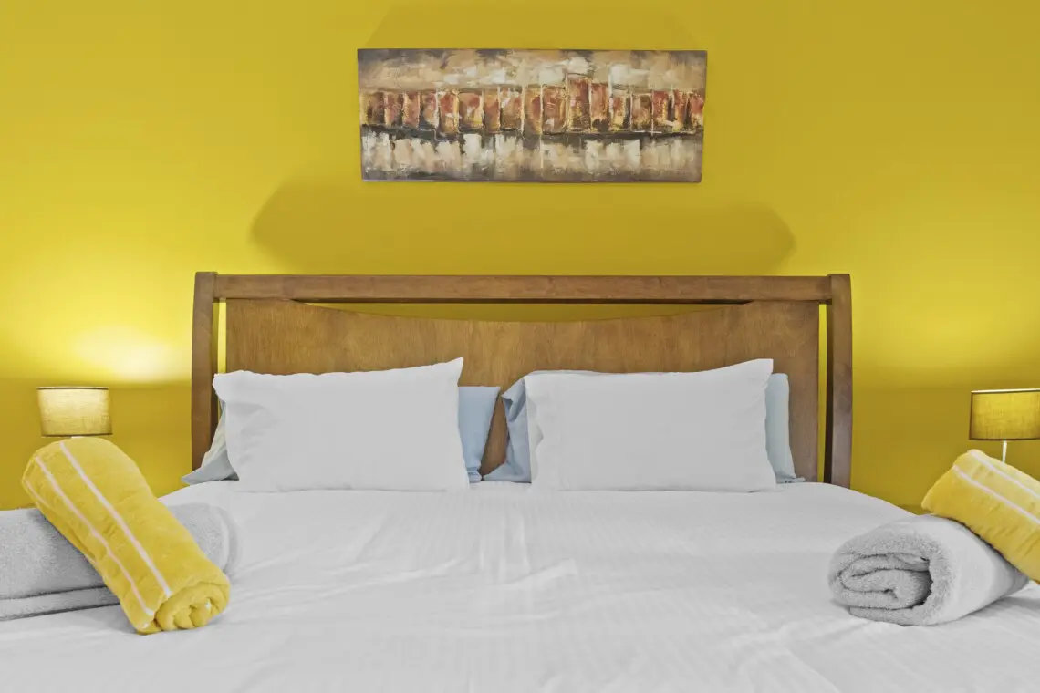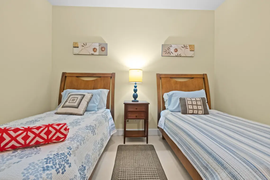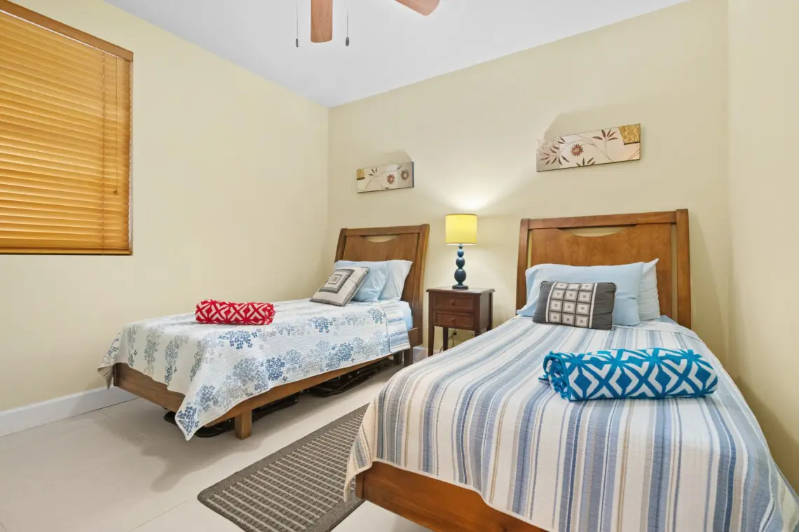 Front Bedroom – Two single beds that converts to King bed upon request, Smart TV, closet