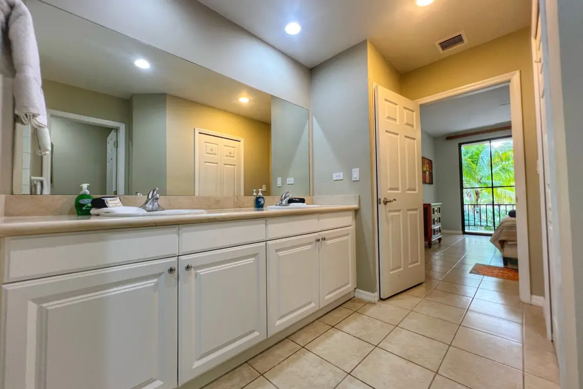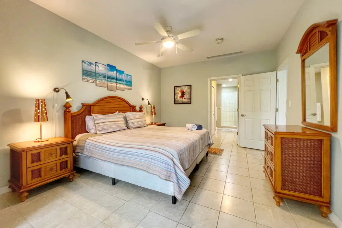This 1-bedroom condo is located in one of the best buildings in Pacifico. It backs right onto the middle lazy river pool section and is one of the closest buildings to the main gate. It makes walking in and out of town a breeze!
