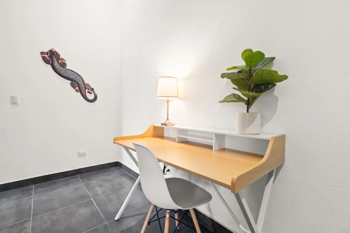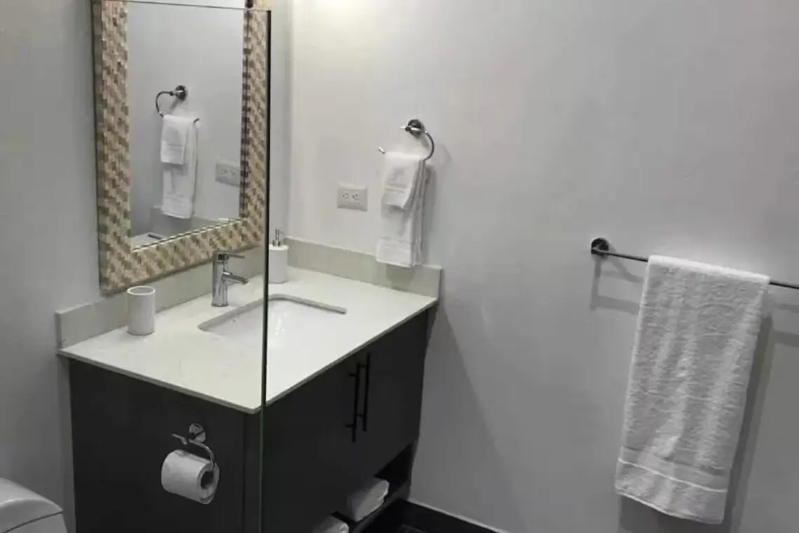 The primary bedroom offers a king bed and ensuite bathroom, while the guest rooms include two twin beds and a twin-over-queen bunk — perfect for families or groups. The condo also features a dedicated workspace, fiberoptic internet, and private laundry for your convenience.