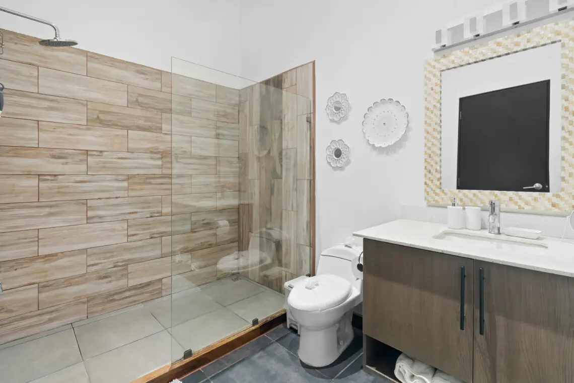 – Primary Bedroom – King bed, walk-in closet, ensuite bathroom with shower/tub combo