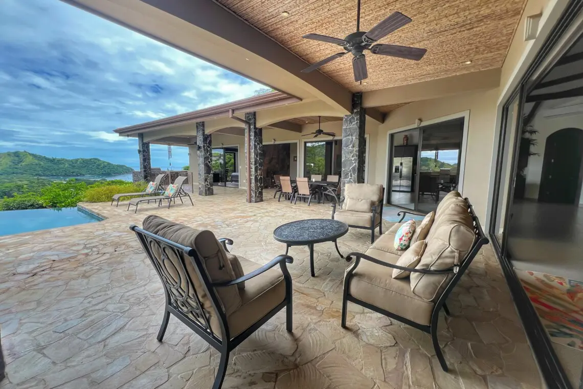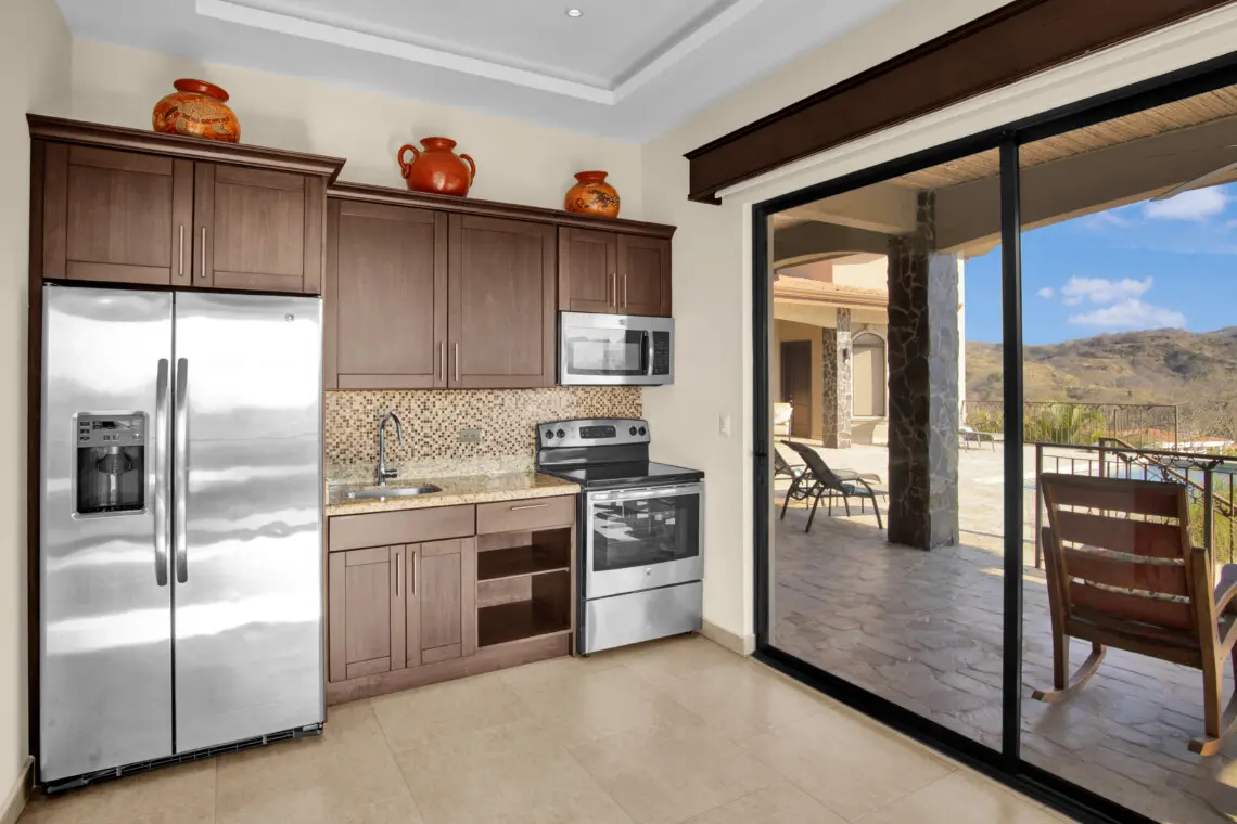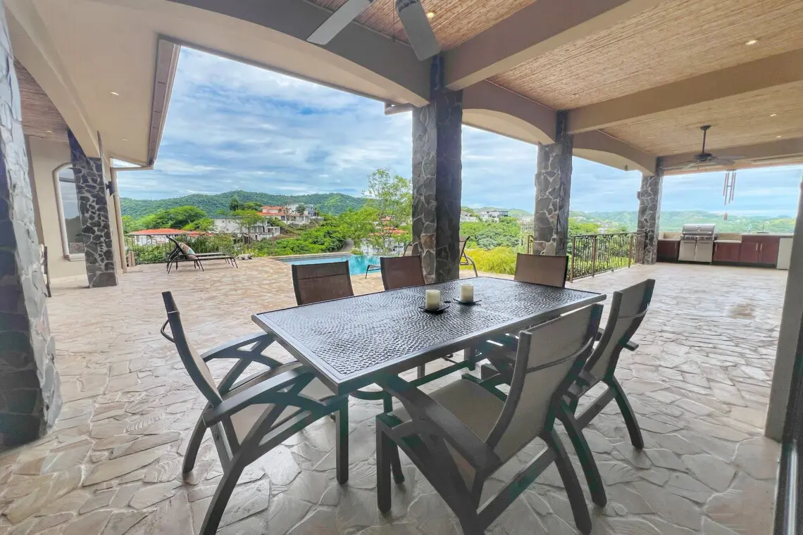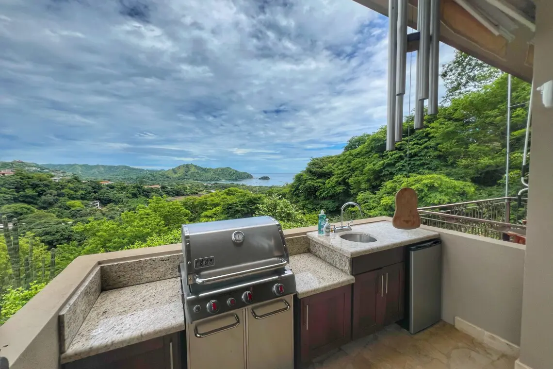 Outside, the scenery steals the show. Nature lovers will appreciate the many birdcalls in the morning and the gentle rustle of the howler monkeys in the trees below (the home sits next to a protected nature corridor). The private infinity-edge pool and terrace offer sweeping views of Playas del Coco Bay and the lush, green hills that surround it. The covered patio provides the ideal setting for morning coffee or sunset cocktails, with comfortable seating and ocean vistas. The outdoor grilling area – with a Weber gas BBQ, wet bar, and beverage fridge—makes poolside dining a breeze. Whether you’re soaking in the sun on a lounger, spotting parrots overhead, or enjoying a peaceful evening under the stars, this outdoor oasis brings you closer to Costa Rica’s vibrant coastal beauty.