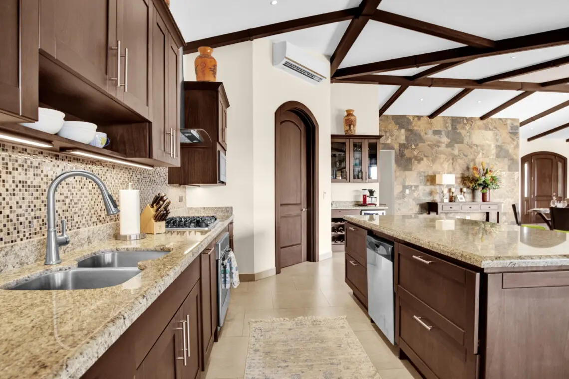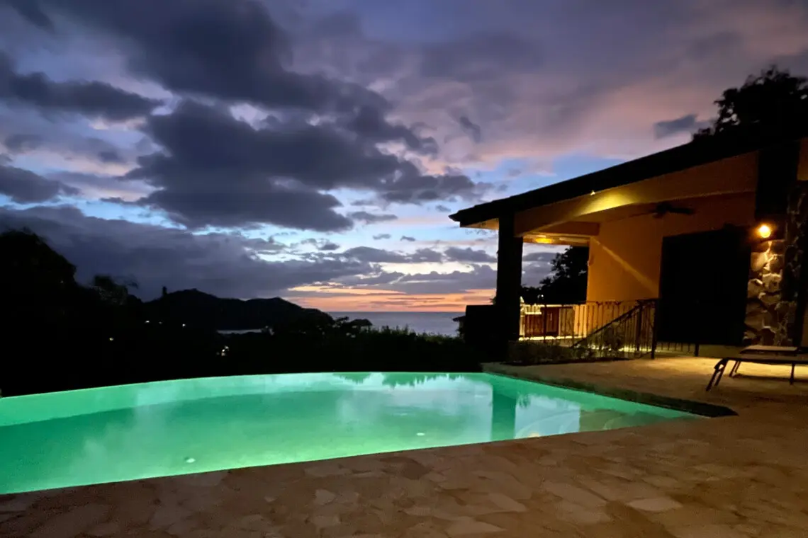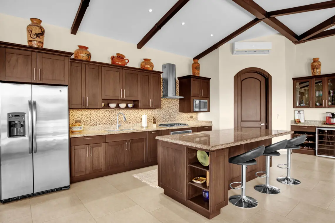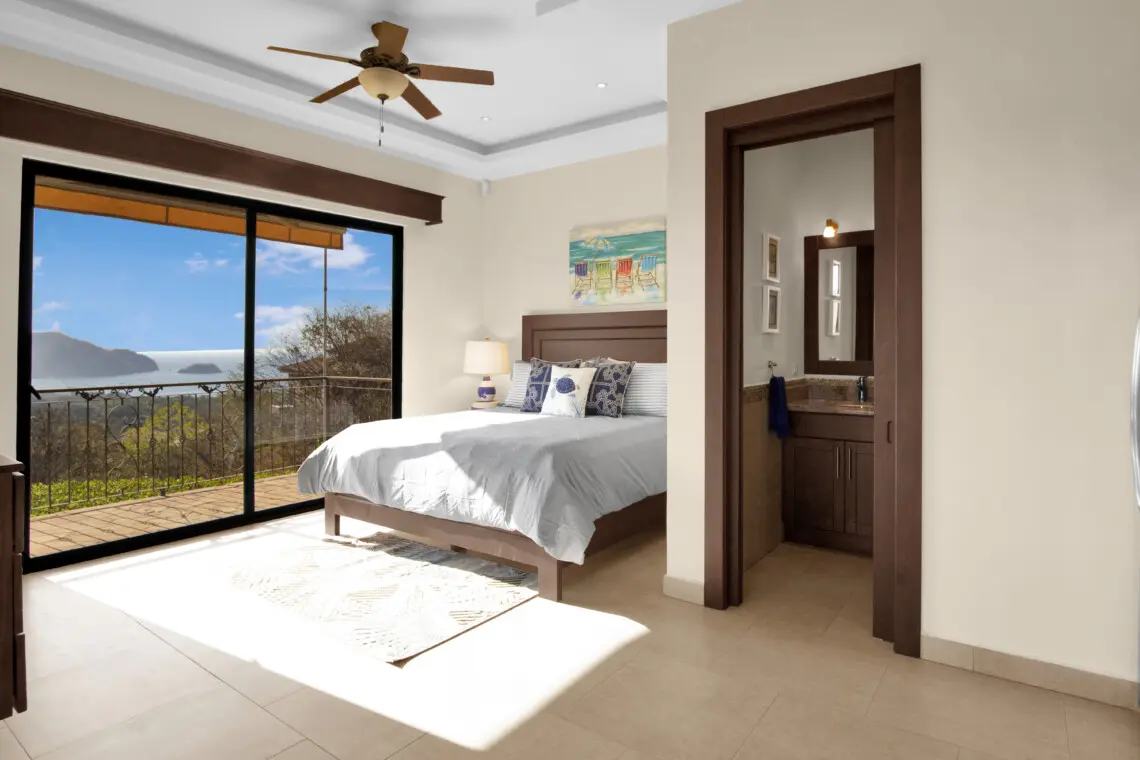 Outside, the scenery steals the show. Nature lovers will appreciate the many birdcalls in the morning and the gentle rustle of the howler monkeys in the trees below (the home sits next to a protected nature corridor). The private infinity-edge pool and terrace offer sweeping views of Playas del Coco Bay and the lush, green hills that surround it. The covered patio provides the ideal setting for morning coffee or sunset cocktails, with comfortable seating and ocean vistas. The outdoor grilling area – with a Weber gas BBQ, wet bar, and beverage fridge—makes poolside dining a breeze. Whether you’re soaking in the sun on a lounger, spotting parrots overhead, or enjoying a peaceful evening under the stars, this outdoor oasis brings you closer to Costa Rica’s vibrant coastal beauty.