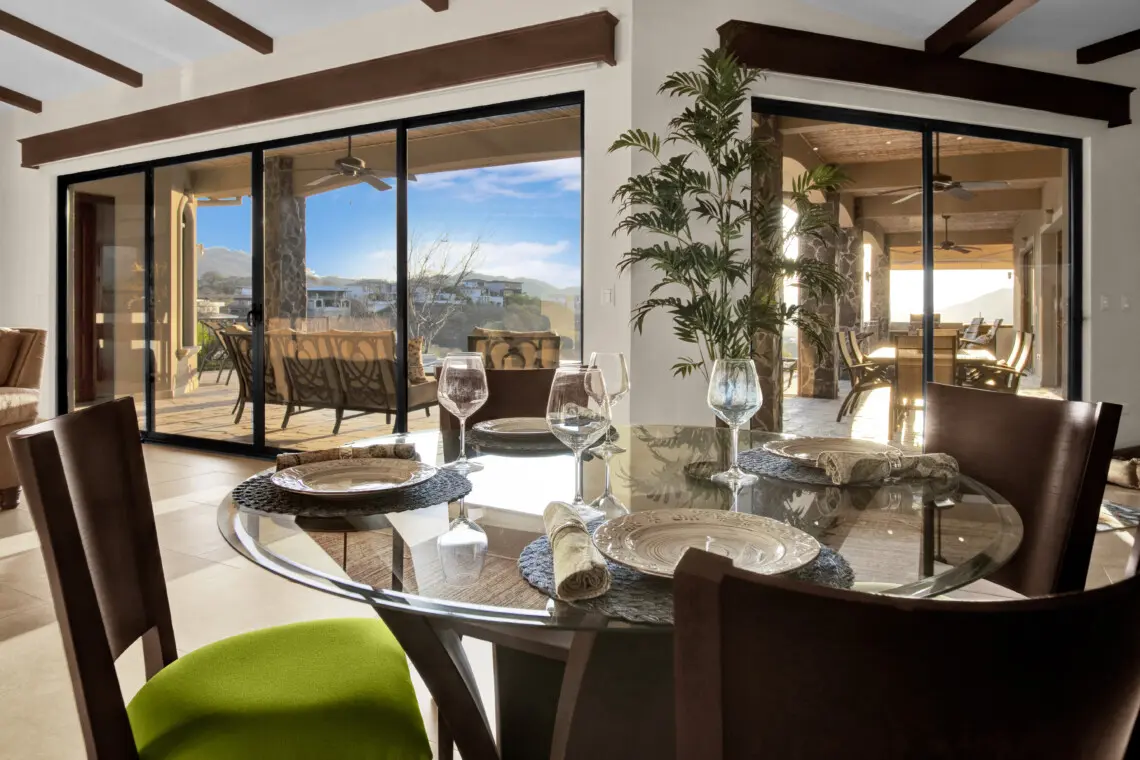– Private infinity-edge pool with loungers, conversation set, rocking chairs and dining table