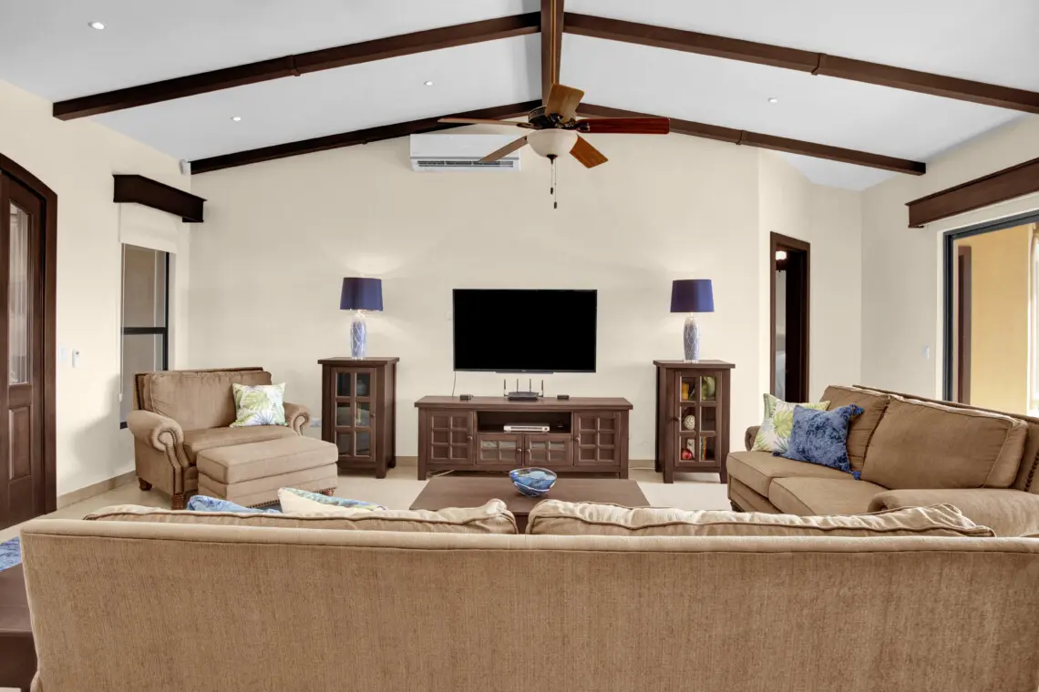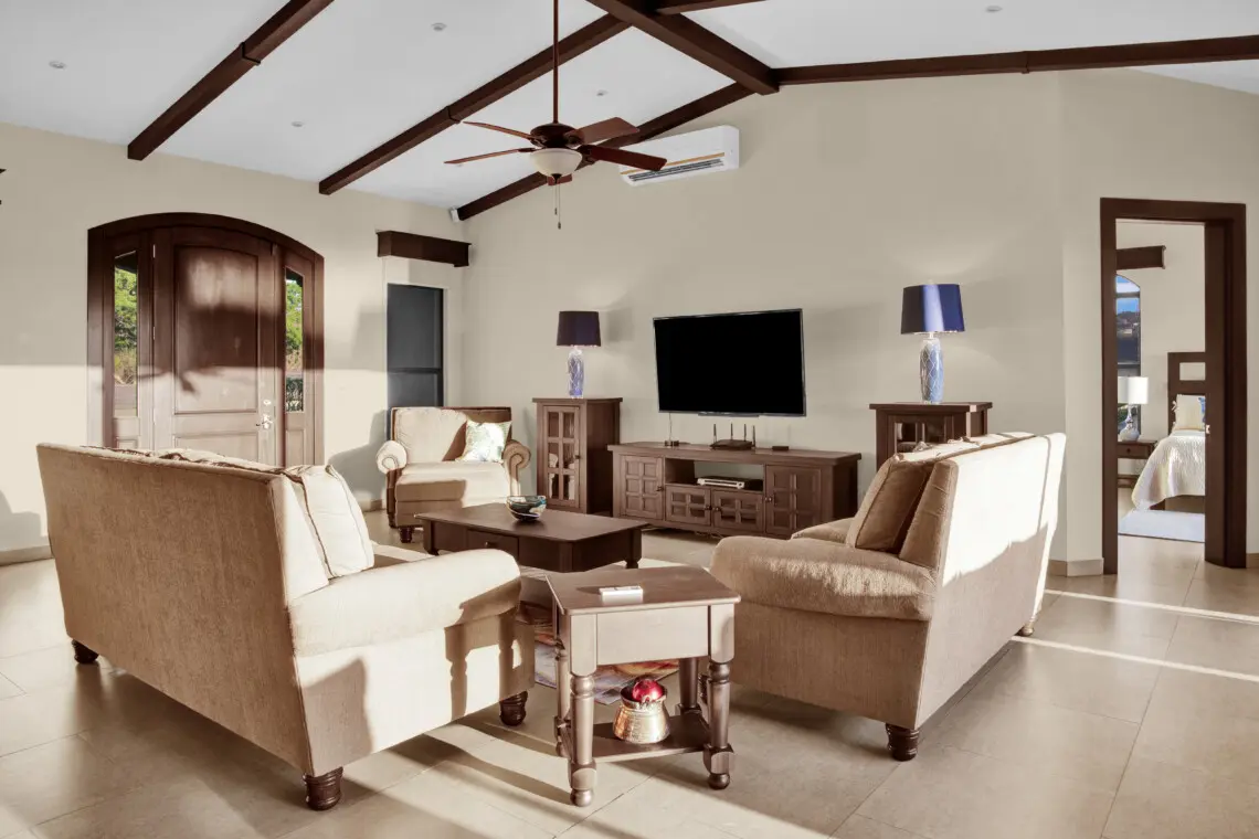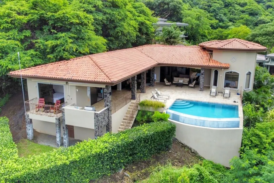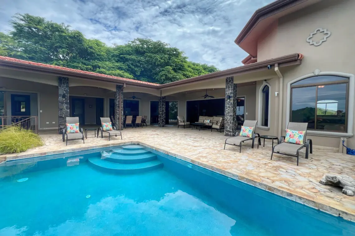 Relax in style at this luxurious single-level home in the exclusive PACIFICO community, overlooking Playas del Coco. With 4 bedrooms (each with ensuite baths), including a private poolside guest suite, this home is perfect for families or groups seeking comfort and privacy. Situated alongside a protected nature corridor, you’re sure to enjoy spotting howler monkeys and birds from your patio.