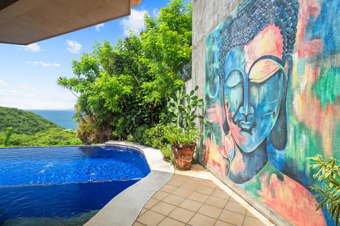 Casa OM is a gorgeous oasis with a private pool and stunning ocean views. Situated in the gated community of Monte Paraiso, it’s nestled between the bustling beach town of Playas del Coco and the bedroom community of Playa Hermosa. You can relax in your private pool or have your toes in the sand in under 10 minutes.
