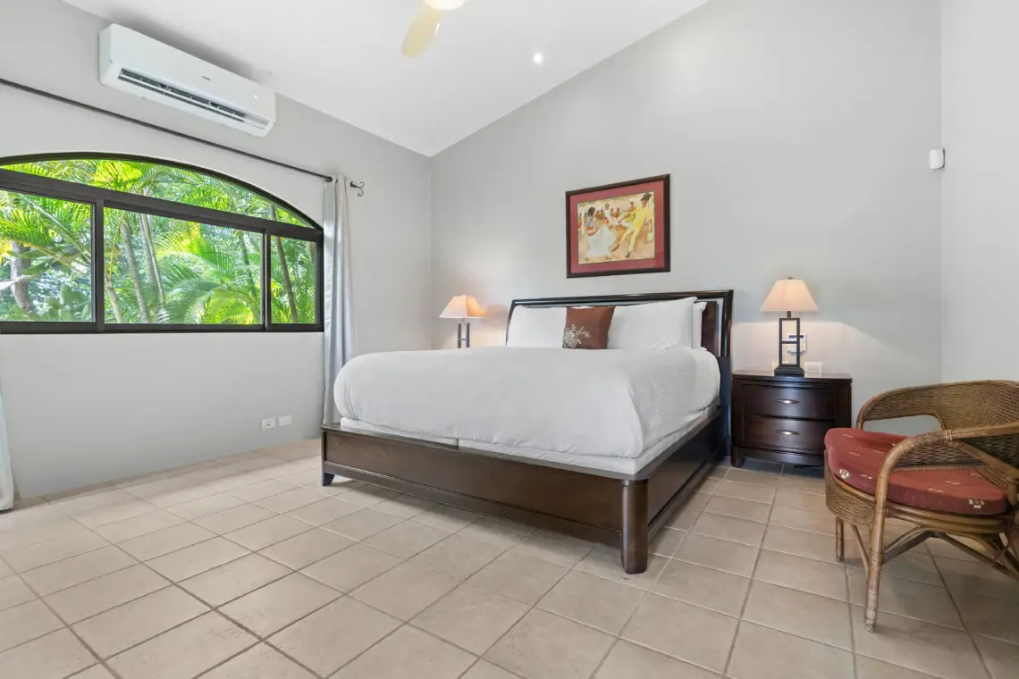 Primary Bedroom – King bed, ensuite bathroom, TV with cable