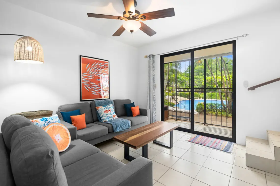 The Tropical Dreams complex is tucked in the back of Las Palmas neighborhood. It’s a small community of just 14 townhouses with a shared pool and covered rancho area. Situated just a short walk to two large plazas (Pueblito Norte and Pueblito Sur) that are home to many fantastic restaurants, a coffee shop, a grocery store, a day spa, a medical office, and more! Cross the street and you’re on the beach! You’ll find many, many more restaurants as well as shops, and 3 large grocery stores in Downtown Coco.