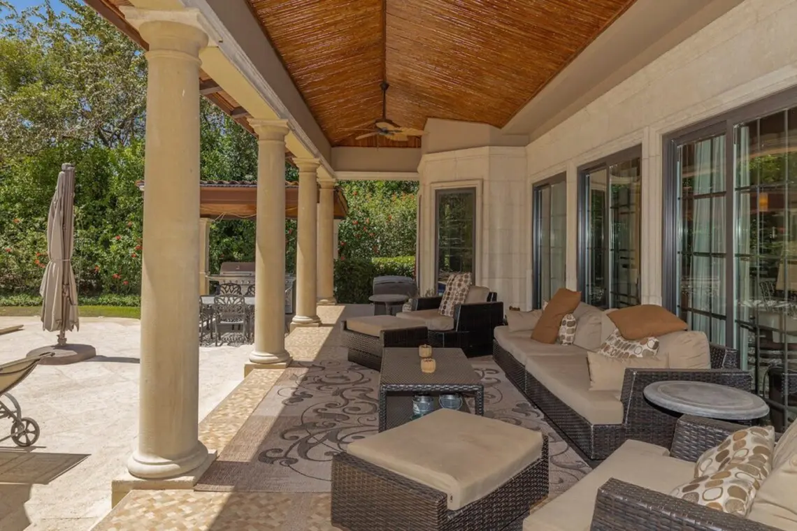 Outside, this Villa Toscana takes vacation to a new level, making you feel like you’re at your own private resort. The large, covered terrace has multiple lounge spaces and steps down to a massive yard with a private pool, BBQ pavilion, and lots of lounging areas. This tropical oasis is your private piece of paradise.
