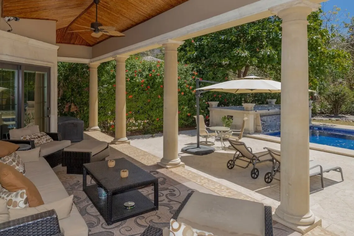 – Private pool with waterfall, large covered terrace, and lounge areas