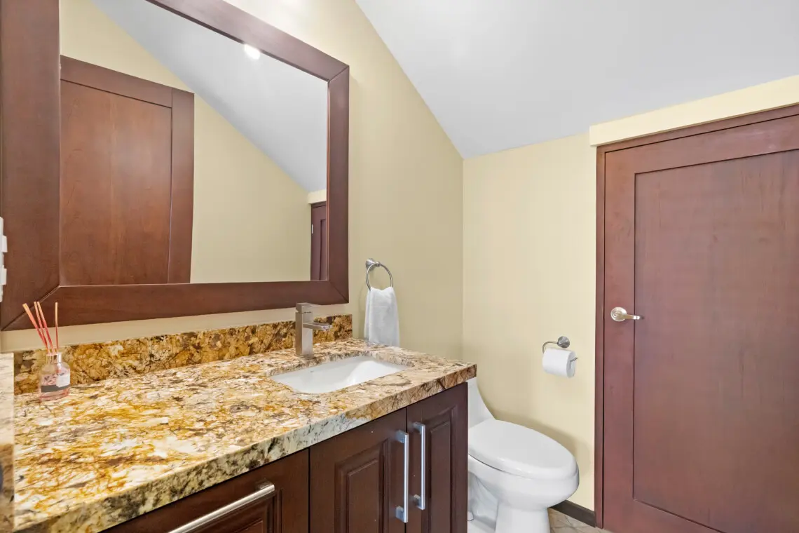 Main Floor Suite – King bed, 55″ Smart TV with digital cable, ensuite bathroom, closet with safe, pool terrace access