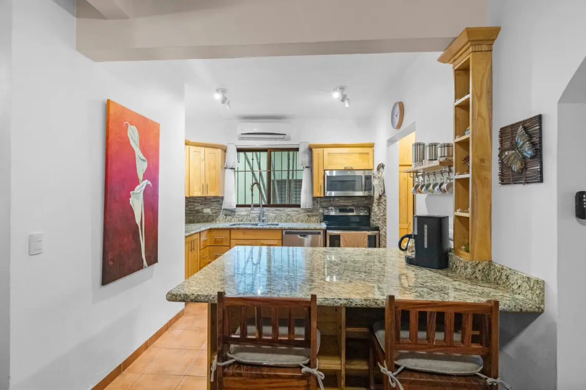 The Valle del Sol complex is quiet, and family friendly. Set in the heart of the Las Palmas community, you’re just a short walk from two large plazas (Pueblito Norte and Pueblito Sur) that are home to many fantastic restaurants, a coffee shop, a grocery store, a day spa, a medical office, and more! Cross the street and you’re on the beach! You’ll find many, many more restaurants as well as shops, and 3 large grocery stores in Downtown Coco.